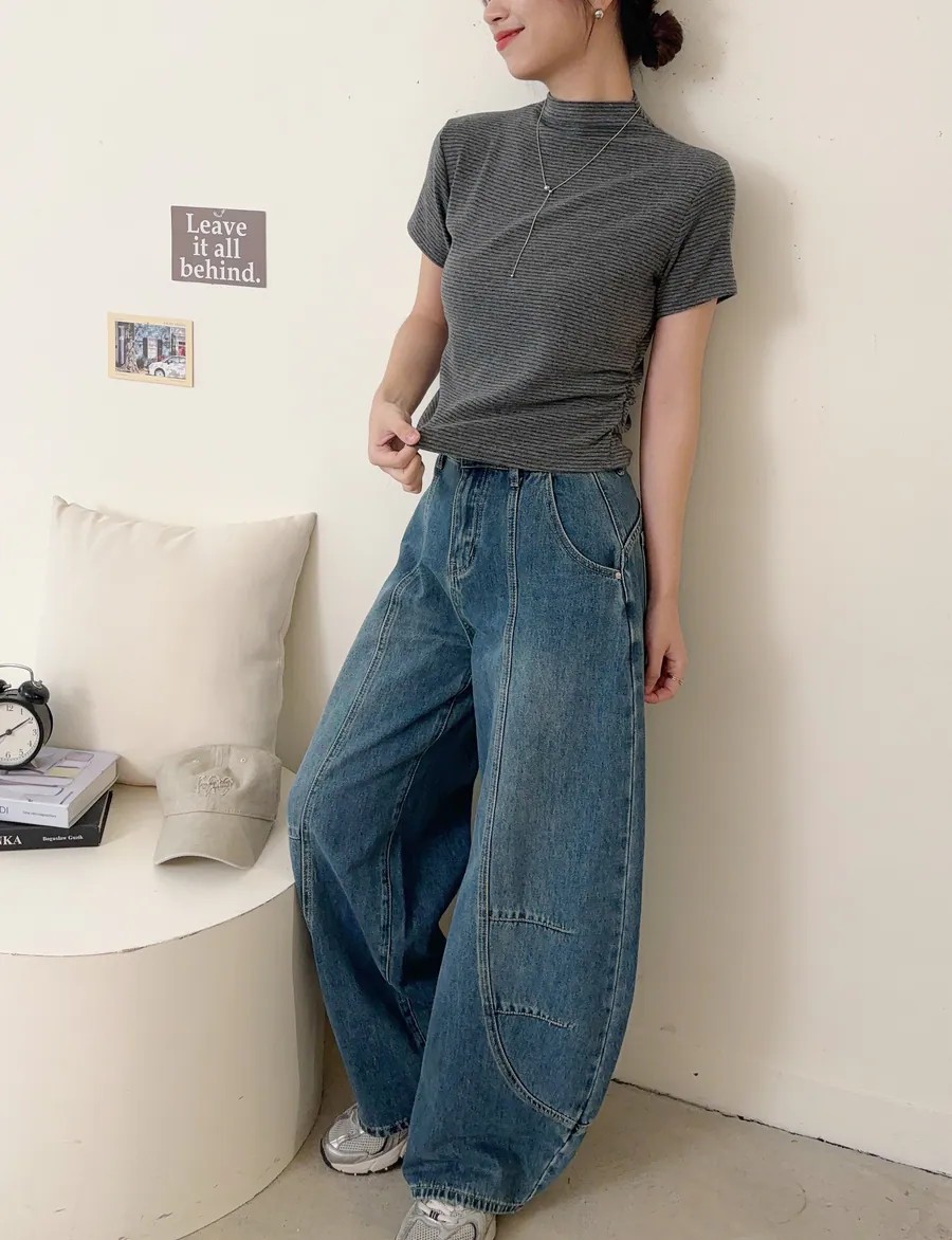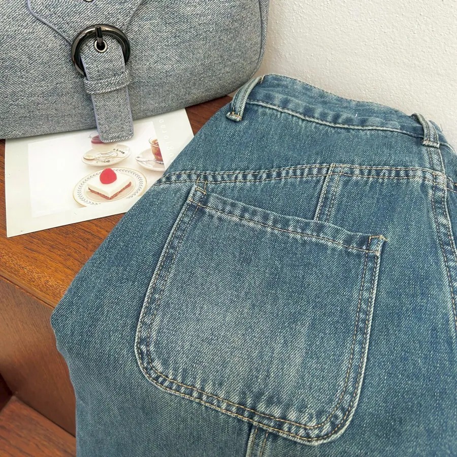 *牛仔布料因是水洗染色,可能會有些許色差,同款不同色的尺寸長度也會有些許落差,可接受在下單唷。