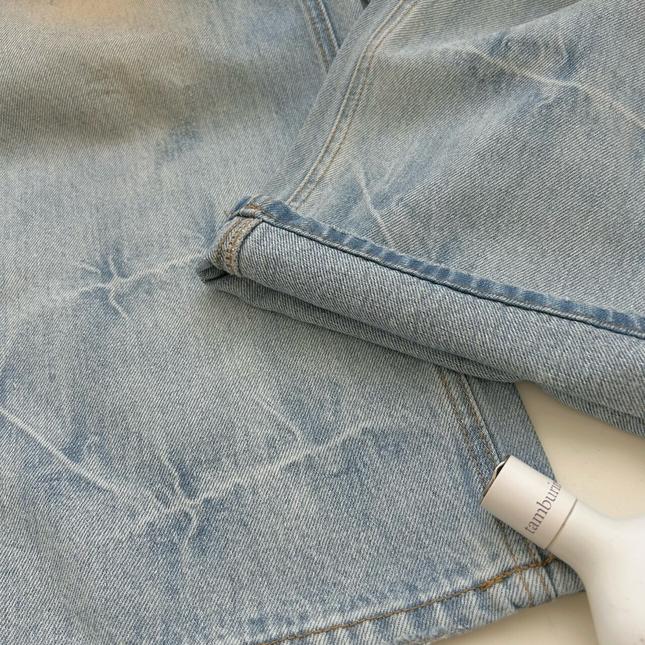 * 牛仔「一定」會染色,穿在身上請小心淺色系衣物、包包摩擦染色。洗滌時也請單件清洗喔!