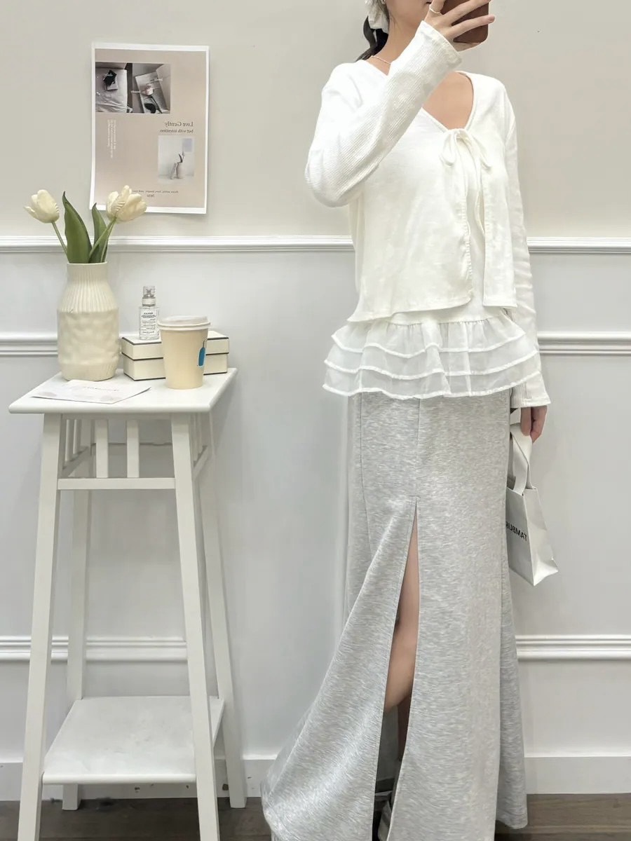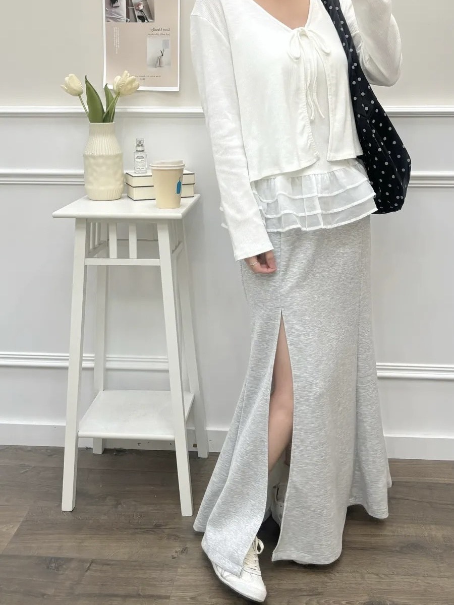 抽繩鬆緊前開衩魚尾長裙