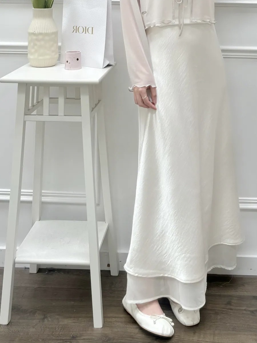 雙層開衩緞面長裙