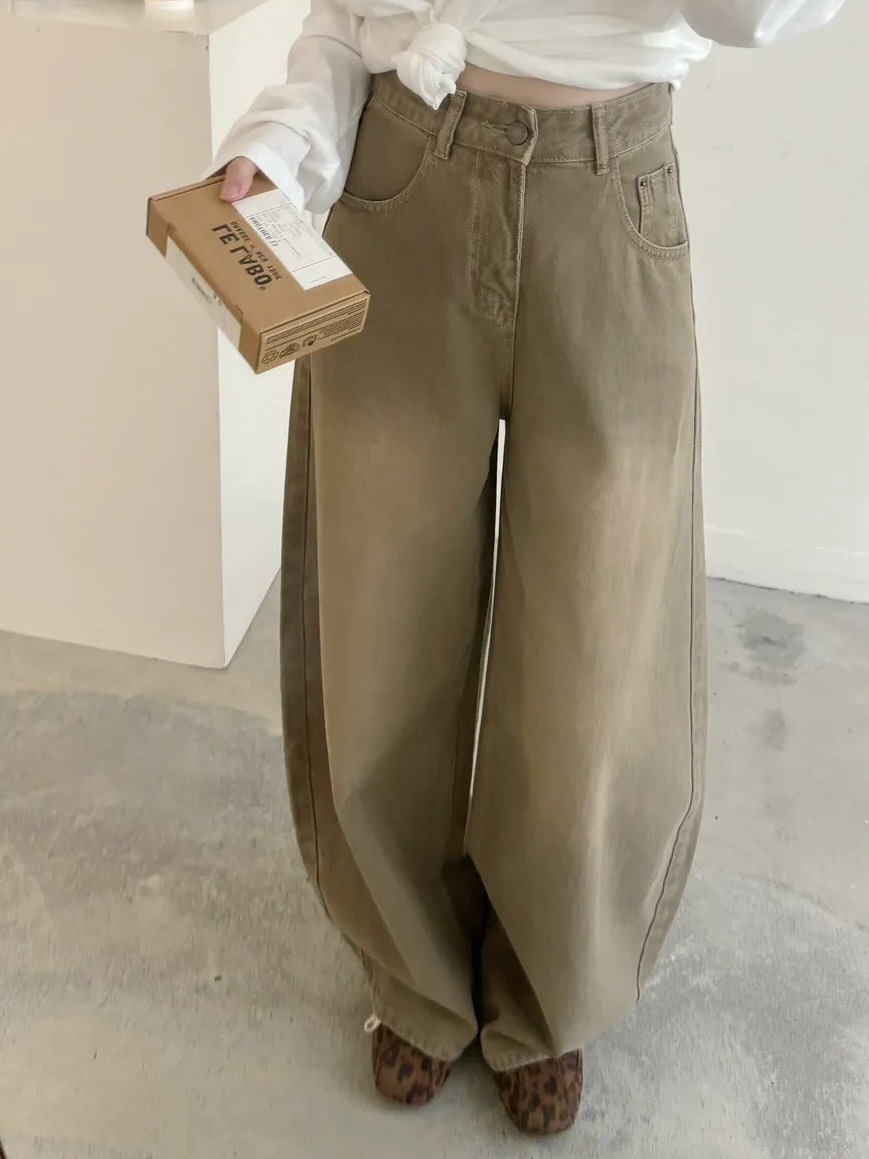 復古刷色繭型彎刀褲