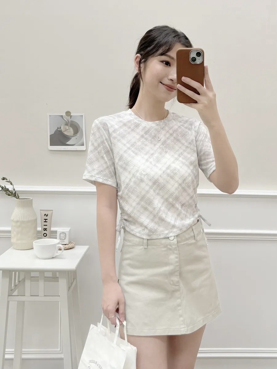 慵懶格紋雙抽繩上衣