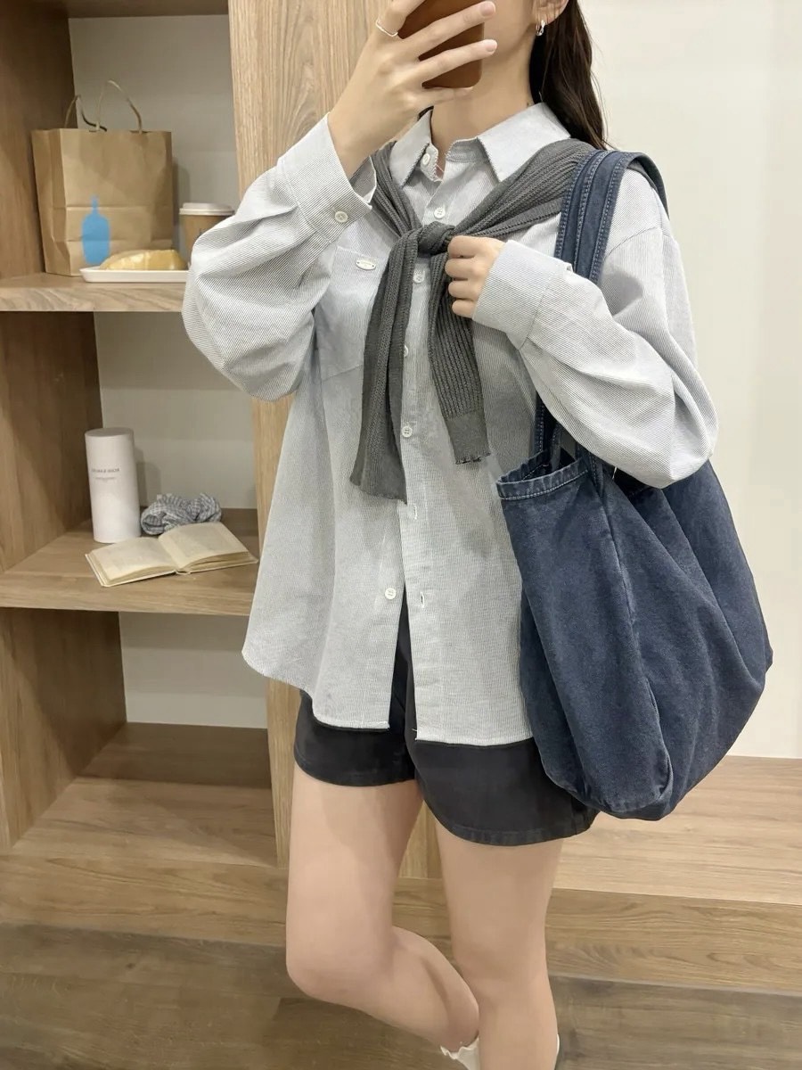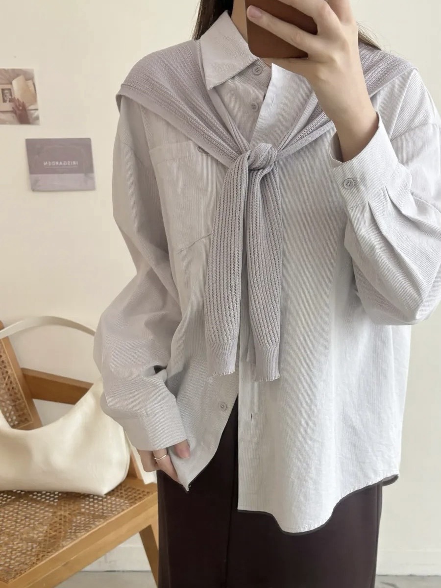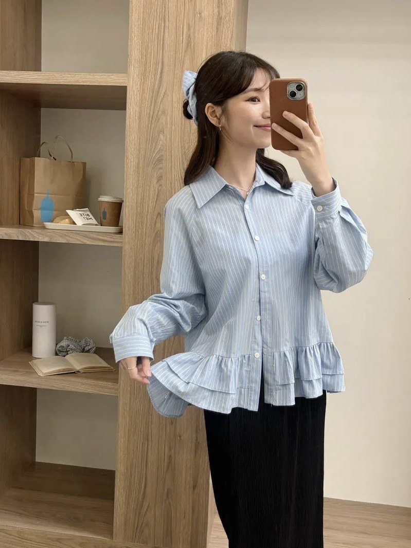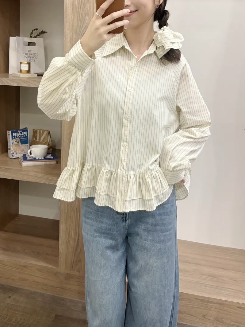 設計感下擺附髮圈條紋襯衫