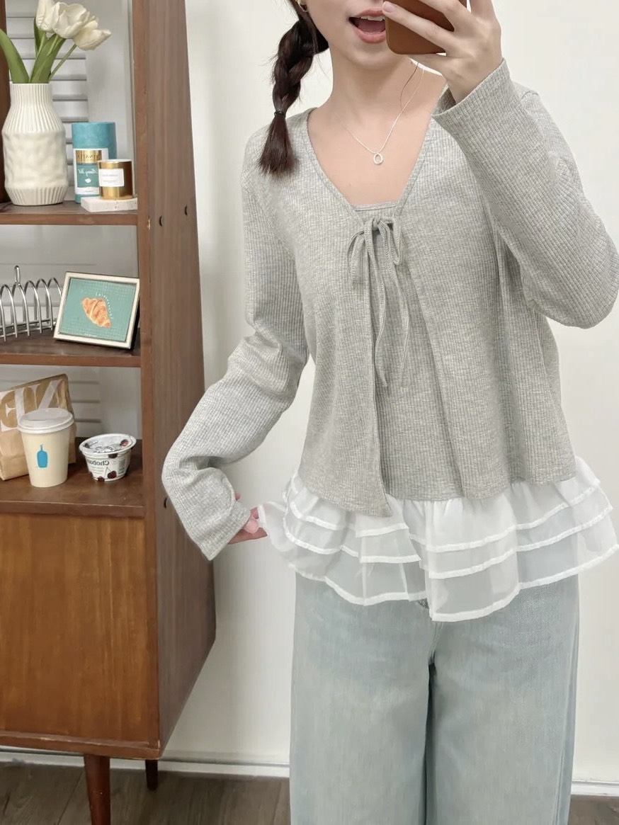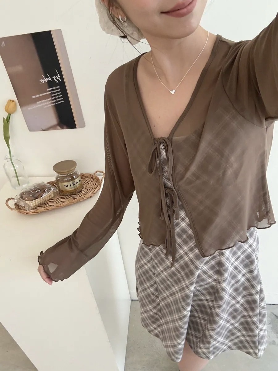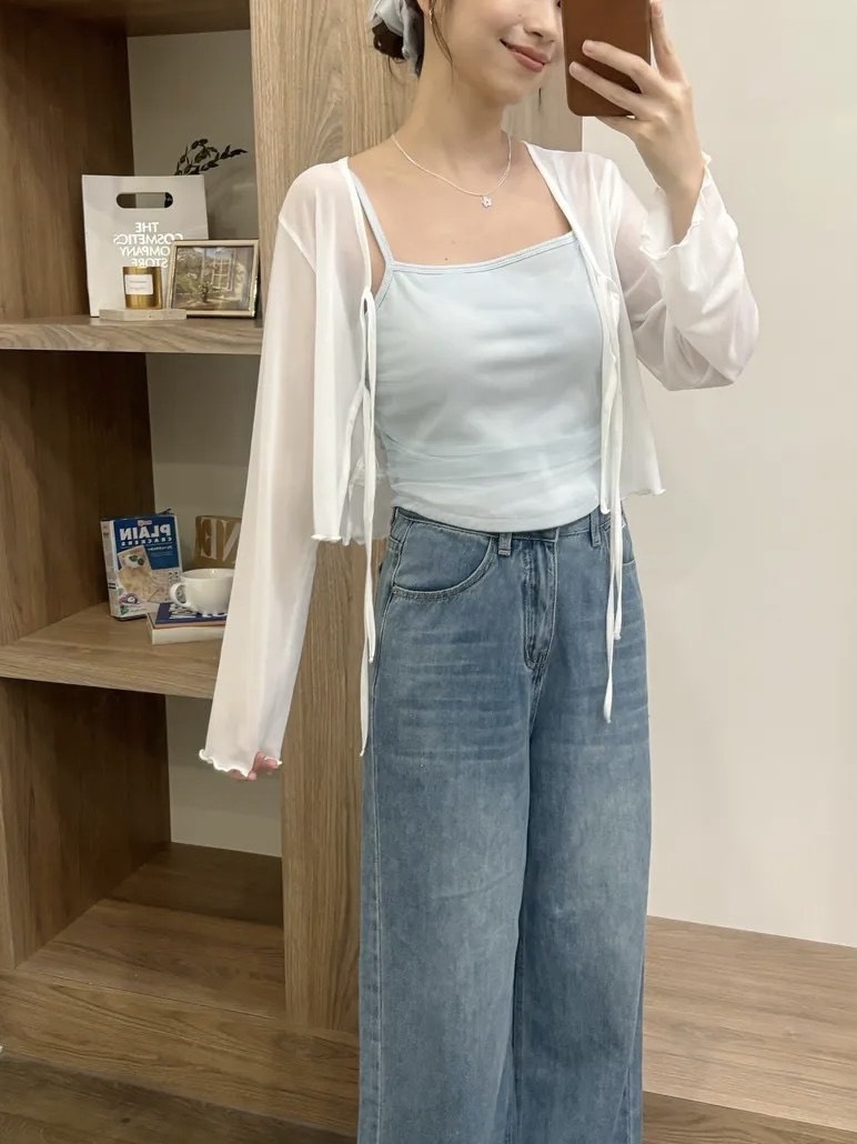 透膚雙綁帶罩衫